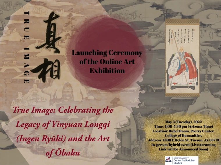 The year 2022 marks the 350th death anniversary of Zen Master Yinyuan Longqi (隱元隆琦 1592-1673, Ingen Ryūki in Japanese). The anniversary of an eminent master’s death is an important occasion for commemoration in much of the Buddhist world. We are pleased to announce that the Center for Buddhist Studies, College of Humanities at the University of Arizona is organizing a series of commemorative events which will run for one year beginning May 3, 2022. These events will present and explore the extraordinary life of Zen Master Yinyuan and the great achievements of the Huangbo 黃檗 tradition (known as the Ōbaku school in Japan) of Zen Buddhism that he pioneered in China and Japan. These events highlight the intersection between religion, art, and culture in China and Japan and will be presented in both online and offline formats. Activities will include an online exhibition of works of art related to the Ōbaku tradition, academic lectures, musical performances, and tea-related events.