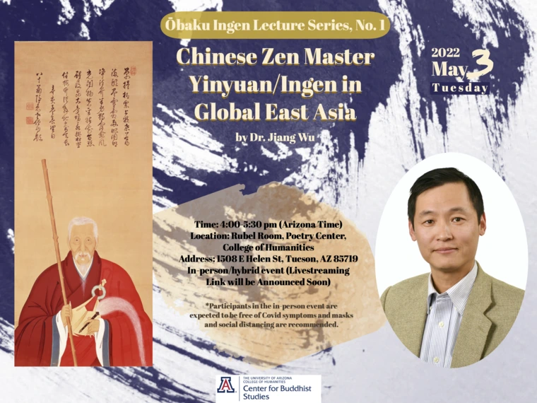 The year 2022 marks the 350th death anniversary of Zen Master Yinyuan Longqi (隱元隆琦 1592-1673, Ingen Ryūki in Japanese). The anniversary of an eminent master’s death is an important occasion for commemoration in much of the Buddhist world. We are pleased to announce that the Center for Buddhist Studies, College of Humanities at the University of Arizona is organizing a series of commemorative events which will run for one year beginning May 3, 2022. These events will present and explore the extraordinary life of Zen Master Yinyuan and the great achievements of the Huangbo 黃檗 tradition (known as the Ōbaku school in Japan) of Zen Buddhism that he pioneered in China and Japan. These events highlight the intersection between religion, art, and culture in China and Japan and will be presented in both online and offline formats. Activities will include an online exhibition of works of art related to the Ōbaku tradition, academic lectures, musical performances, and tea-related events.